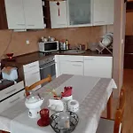 V apartmánu je kompletní kuchyně s rychlovarnou konvicí, chladničkou a troubou, a také koupelna s samostatnou toaletou a vanou.